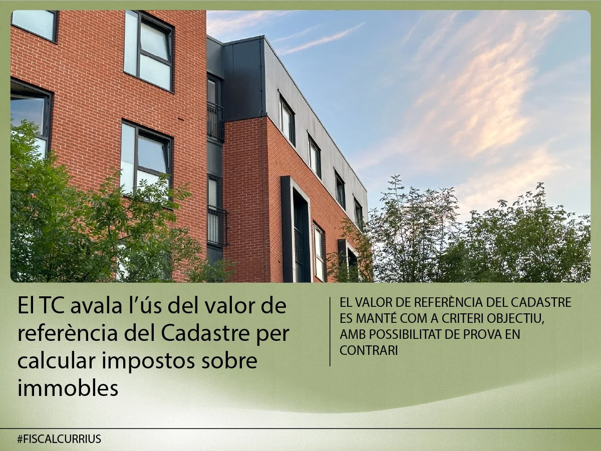 El Tribunal Constitucional avala l’ús del valor de referència del Cadastre per calcular impostos sobre immobles